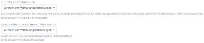 Gehen Sie zur Kundenseite und wählen Sie oben rechts „Kundeneinstellungen“. Öffnen Sie den Reiter „Kundenportal“. Hier können Sie festlegen, welche Rechnungen der Kunde im Online-Portal einsehen darf. Diese Einstellung überschreibt die Standard-Administrationseinstellungen.
