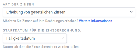Es gibt eine neue Seite in den Administrationseinstellungen, auf der Sie die Zinsen konfigurieren können. Es war bereits möglich, Zinsen einzustellen, jedoch wurde dies nun auf eine neue Seite verlegt, auf der Sie die Zinsen für B2B- und B2C-Kunden getrennt festlegen können.