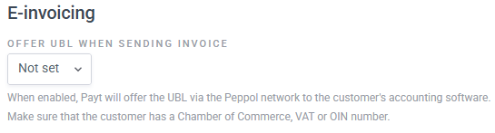 If you keep this setting disabled, UBL documents will only be sent to customers if e-invoicing is enabled for the customer.