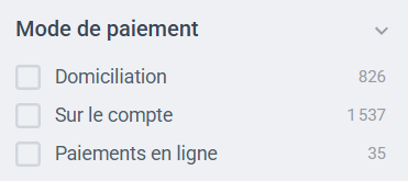 Depuis ce mois-ci, vous pouvez filtrer l'aperçu des factures en fonction du mode de paiement : prélèvement automatique, sur facture ou paiement en ligne (via le portail de facturation).