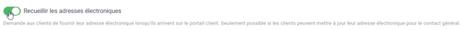 Attention : Ce paramètre ne peut être activé que si le paramètre « Permettre aux clients de modifier leur adresse électronique de contact général » est activé.
