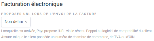 Si vous laissez ce paramètre désactivé, les documents UBL ne seront envoyés aux débiteurs que si la facturation électronique est activée chez le débiteur.