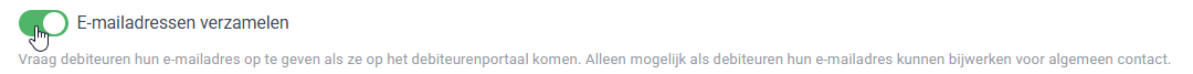 Let op: Deze instelling kan alleen geactiveerd worden als de instelling 'Aanpassen van algemeen contact e-mailadres door debiteuren toestaan' is geactiveerd.